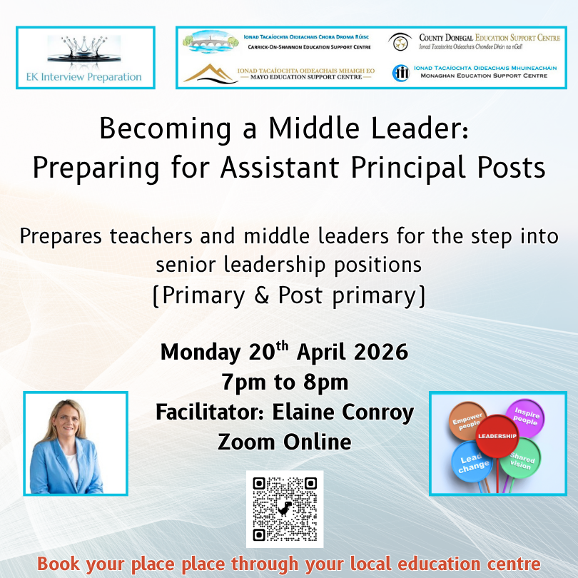 This webinar is hosted by Carrick-on-Shannon Education Support Centre. The information you provide when registering will be shared with the host centre and the centre through which you booked and can be used and shared by them in accordance with their Terms and Privacy Policy, which is available on their website.